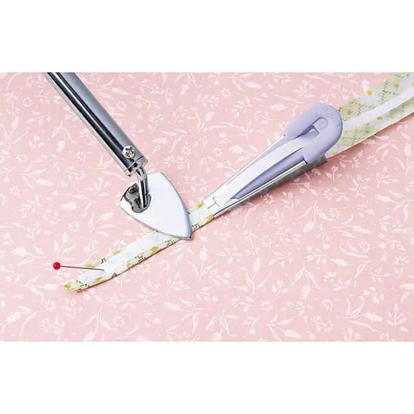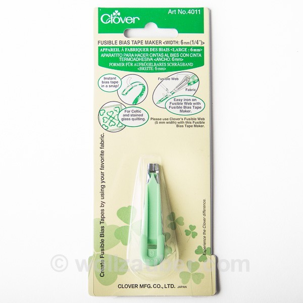 Der Clover 4011 Schrägbandformer mit 6 mm (1/4") Breite ist das ideale Werkzeug, um mühelos gleichmäßiges Schrägband aus Stoffresten oder Lieblingsstoffen herzustellen. Einfach den Stoffstreifen durch den Former ziehen und beim Austreten mit dem Bügeleisen fixieren – schon entsteht perfekt gefaltetes Schrägband in gewünschter Breite.