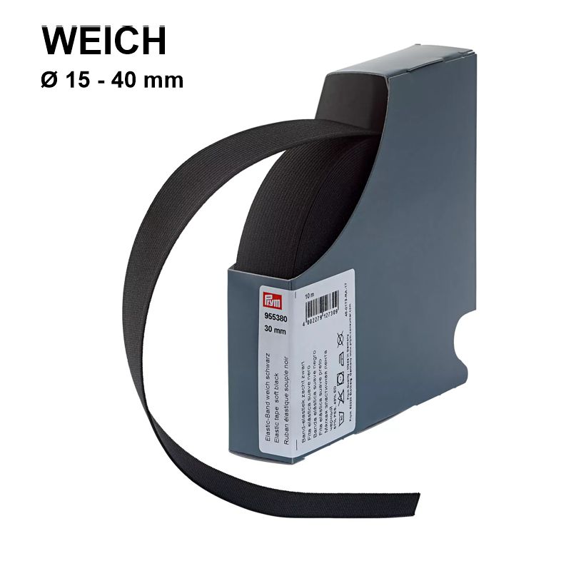 Das weiche Elastic-Band von PRYM ist universell einsetzbar und ideal zum Einziehen oder Aufsteppen in Rock- und Hosenbünde, Pyjamas und viele weitere Nähprojekte. Es überzeugt durch angenehmen Tragekomfort, gute Rücksprungkraft und langlebige Qualität.