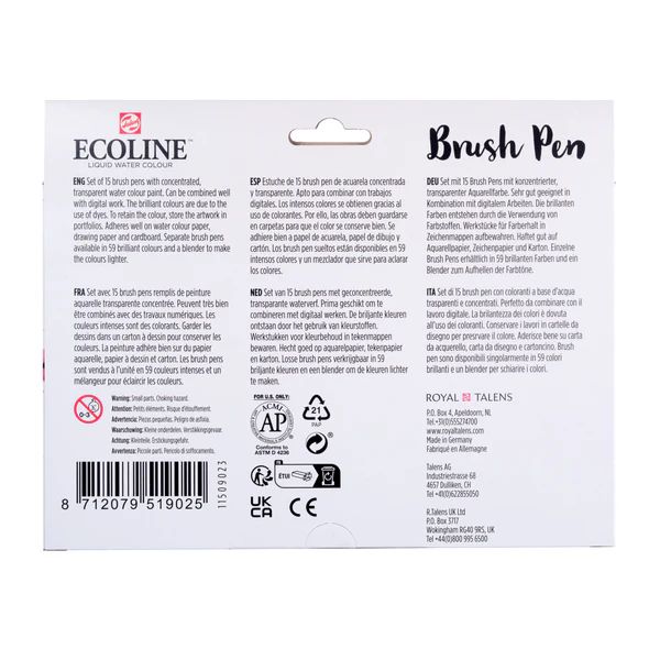Talens Ecoline Brush Pen 15er Set – brillante Farben für kreative Ideen