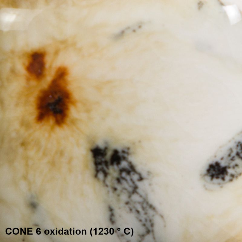 - Brennempfehlung: 999 °C – 1046 °C (CONE 05-06) bei höheren Temperaturen werden die Farben blasser