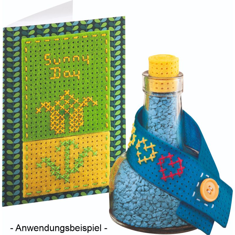 Das Folia Stickfilz-Set ist die perfekte Wahl für kreative Bastelprojekte und Handarbeiten. Es enthält 5 Stickfilzplatten (je 21 x 29,5 cm), 5 Stickgarne in verschiedenen Farben sowie 10 Kunststoffnadeln, ideal für sicheres und einfaches Sticken. Dank des robusten Filzmaterials eignet sich das Set besonders gut für Anfänger, Kinder und DIY-Fans. Ob für erste Stickversuche, eigene Designs oder dekorative Applikationen – mit diesem Set lassen sich fantasievolle Stickprojekte verwirklichen.