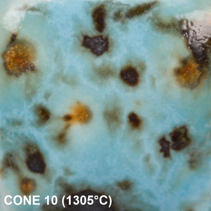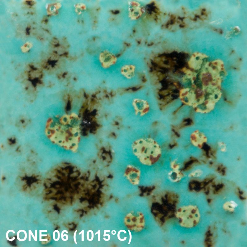 - Brennempfehlung: 999 °C – 1046 °C (CONE 05-06) bei höheren Temperaturen werden die Farben blasser