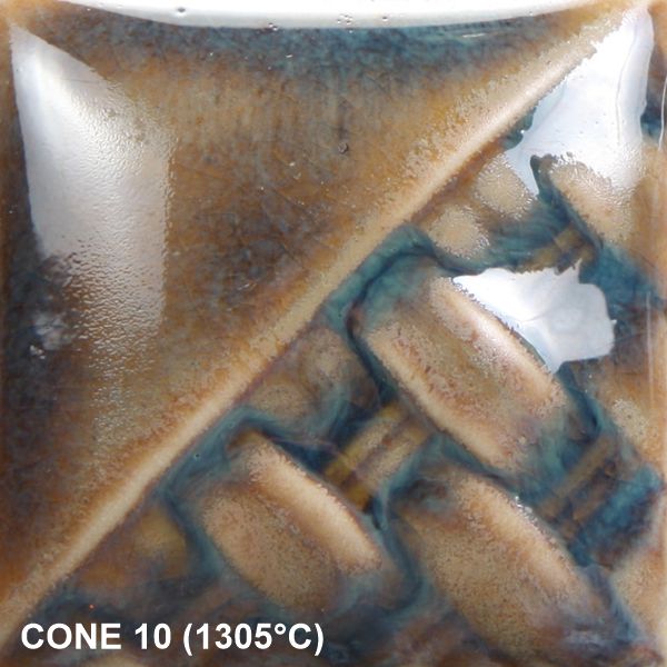 TIPP: Wenn die Glasur mit einem mattierten Finish herauskommt, dann brenne das Stück erneut, um mehr Variation in der Glasur-Oberfläche zu erzeugen. Eine dünnere Anwendung dieser Glasur führt zu weniger Kristallen, während eine dickere Anwendung mehr Kristalle erzeugt. Diese Glasur hat ein glänzendes Finish. Sie lässt sich gut mit anderen Mayco-Glasuren kombinieren. Wenn du Kombinationen mit Capri Blue und Oyster magst, probiere Green Tea aus, da diese in derselben Glasurfamilie enthalten sind.