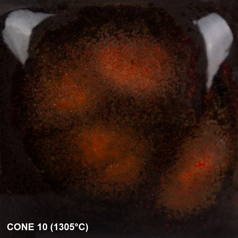 - Deckend schwarze Effektglasur mit kräftig roten Kristallen