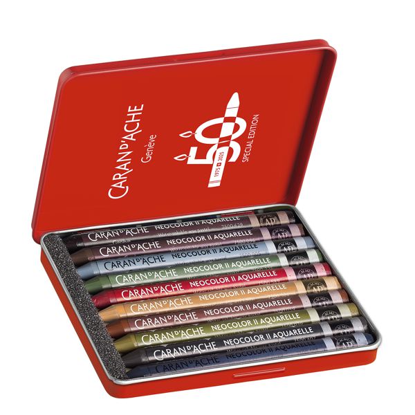 Zum 50-jährigen Jubiläum der ikonischen NEOCOLOR II Aquarellwachspastelle präsentiert Caran d’Ache eine streng limitierte Sonderedition, die Sammlerherzen und Kreativliebhaber gleichermaßen höherschlagen lässt. Das edle Metalletui enthält insgesamt 10 Farben – darunter 7 beliebte Standardtöne und 3 exklusive Sonderfarben, die ausschließlich in diesem Set erhältlich sind und nicht einzeln nachgekauft werden können.