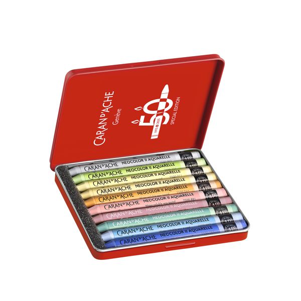 Zum 50-jährigen Jubiläum der ikonischen NEOCOLOR II Aquarellwachspastelle präsentiert Caran d’Ache eine streng limitierte Sonderedition, die Sammlerherzen und Kreativliebhaber gleichermaßen höherschlagen lässt. Das edle Metalletui enthält insgesamt 10 Farben – darunter 7 beliebte Standardtöne und 3 exklusive Sonderfarben, die ausschließlich in diesem Set erhältlich sind und nicht einzeln nachgekauft werden können.