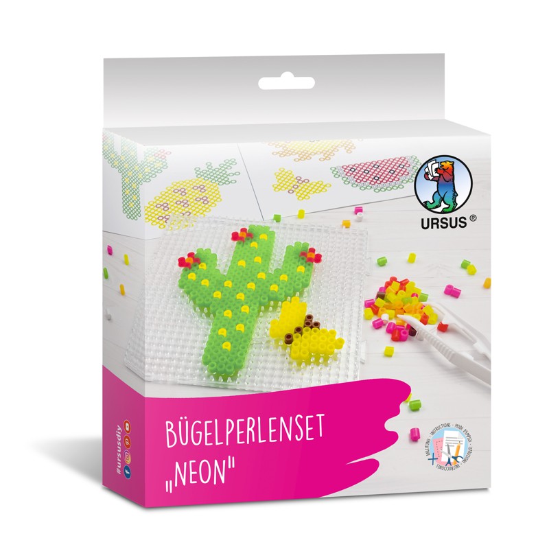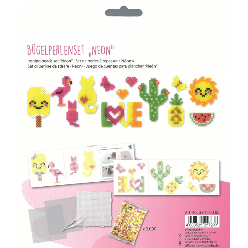 Mit dem Bügelperlenset „NEON“ wird Basteln zum echten Highlight! Knallige Farben und coole Motive wie Eis am Stiel, Kaktus, Sonne und der Schriftzug LOVE bringen Sommer, Spaß und Style auf die Bastelplatte. Das Set enthält alles, was kreative Köpfe brauchen: 2000 leuchtende Bügelperlen, eine transparente Legeplatte, eine Pinzette, trendige Vorlagen und Bügelfolie zum Fixieren.