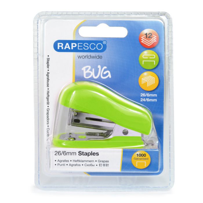 Heftgerät mit 1000 Heftklammern 26/6 GRÜN