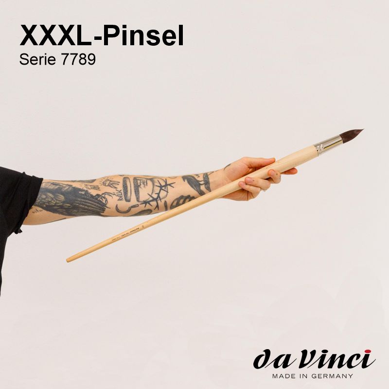Die da Vinci Serie 7789 TOP-ACRYL Pinsel zählen zu den längsten Pinseln im Sortiment und sind speziell für Arbeiten auf großen Formaten entwickelt. Mit ihren 60 cm extralangen rohen Stielen ermöglichen sie flexibles, gestisches Arbeiten aus der Distanz.