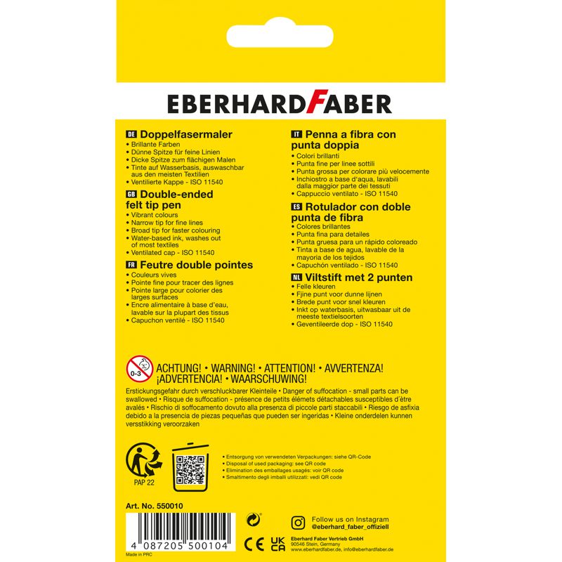 Faber-Castel Connector is a felt pen with the special clip for painting, handicrafts and games. Vibrant colors for great painting techniques for unlimited creativity. Can be washed out of most textiles.
