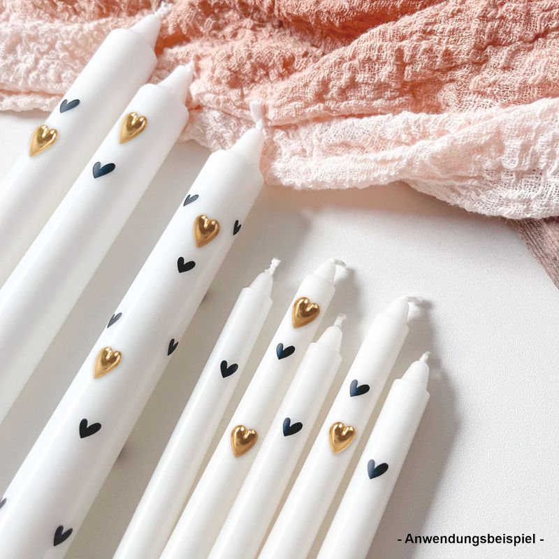 Die Wachsherzen verleihen jeder Kerze eine feierliche Note. Sie können einzeln gesetzt oder mit weiteren Wachsornamenten kombiniert werden – für kreative, einzigartige Kerzendekorationen.
