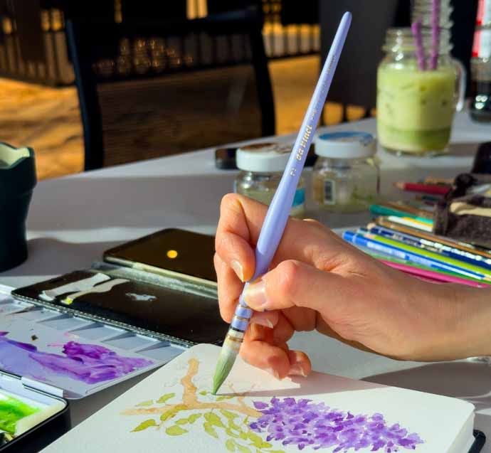 The da Vinci Pretty Lili Edition Watercolour Brush – Series 493, Size 2 features extra-soft, wavy synthetic fibres designed to hold a generous amount of colour while providing gentle elasticity. This gives artists smooth, controlled colour release — perfect for watercolour techniques, soft gradients and fine detailing.