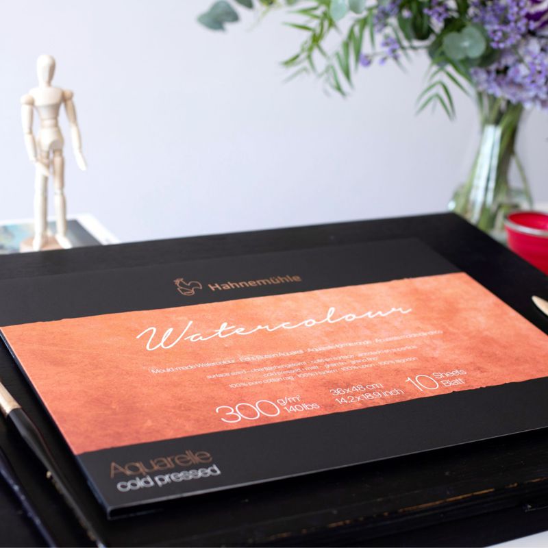 Erhältlich in den Oberflächen cold pressed (matt), hot pressed (satiniert) und rau, passt sich dieses Papier optimal an unterschiedliche Maltechniken und Stilrichtungen an.