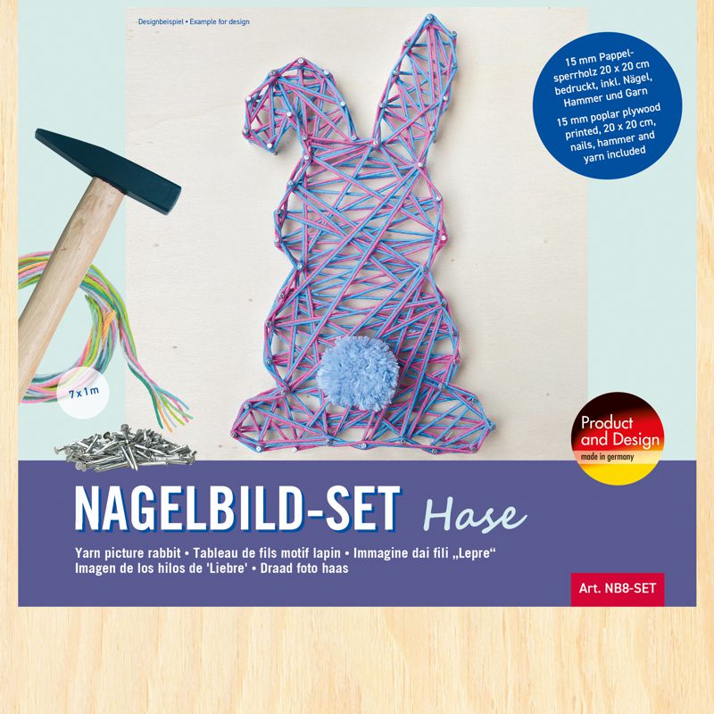 Das Nagelbild-Set mit Hasen-Motiv ist ein kreatives Bastelprojekt für Kinder und Erwachsene. Schritt für Schritt entsteht aus Nägeln und Garn ein dekoratives Fadenbild, das garantiert für leuchtende Augen sorgt.