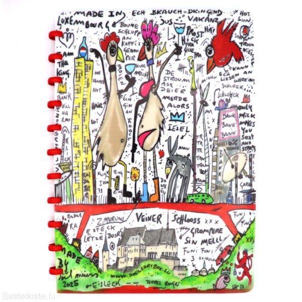 Das ATOMA-Heft „E Stéck Lëtzebuerg“ vereint Funktionalität mit künstlerischem Design. Gestaltet vom luxemburgischen Designer Joël Meiers, überzeugt das Notizheft durch sein stilvolles Cover, das Ausdruckskraft und nationale Identität harmonisch verbindet.